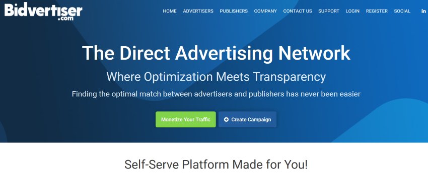 | Bidvertiser | Medium (10,000+ visitors/month) | Banner ads, pop-unders, smart links | Bidding system (CPC, CPM) | Auction-based system for higher ad pricing. |
